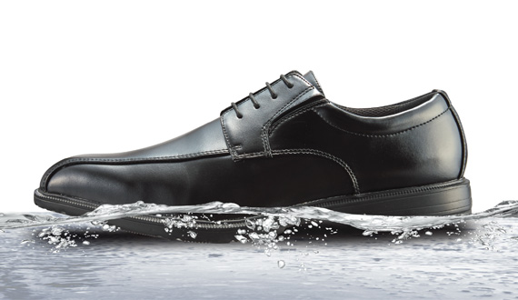水を通さないレザーをアッパーに採用。ミシン目にも防水処理を施し、さらに防水性能をアップ。