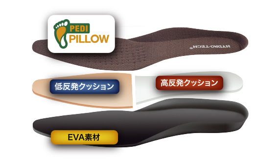 クッション性の高いEVAの上に、前足部には低反発、後足部には高反発のウレタンを採用。